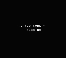 上の画面に変ります。“YES”を選ぶ(十字ボタン → Aボタン)と、ディスクカードへSAVEされます。この時に“NO”を選ぶと、SAVEされずに初期画面にもどります。