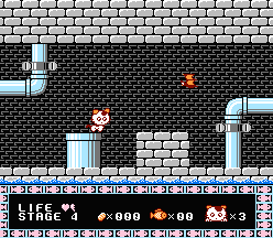 ステージ2でタマは、裏通りに迷い込んでしまいます。あとからあとから敵がやって来てタマは大変! 敵の動きやクセをよく見て進みましょう。