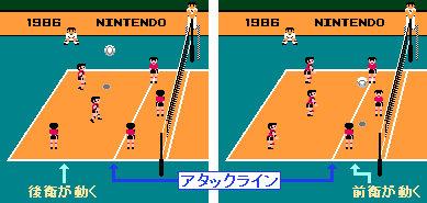 | ③ | Bボタンでレシーブすると、クイック用の低いボールが上がります。 |