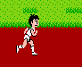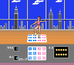 The count begins when the START key in the center of the mat is ridden, and as the 2 keys are alternately stepped on the runner advances. When both feet are removed from the keys the runner jumps.