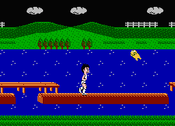 At course 4, the "log bridge," when running the left and right log bridges, please jump with one leg, using either the far left key or the far right key. |