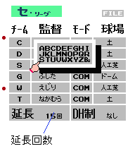 | COM(コンピュータ)モード | 球団のオーナーとしてチームの戦力を分析し、監督のデータを設定します。 |