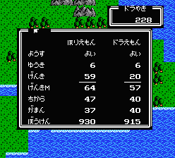このゲームでは、パーティーの持つドラやきが非常に重要なものになります。まず秘密道具を使う時に、一定量のドラやきを消費します(ドラやきを消費しない秘密道具もあります)。また、町や村には、いろいろなアイテムをドラやきと交換してくれる交換所があります。従って、ゲームをスムーズに進めるためにできるだけ多くのドラやきを集めましょう。ドラやきは、町や村でドラミちゃんから、それまでの冒険に応じた数だけもらうことができます。