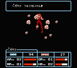 コントローラーⅠのペガサス星矢で、“はなす”“にげる”をすると敵の反撃を受けます。