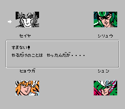 ”を動かし、Aボタンで星矢、紫龍、氷河、瞬の会話を聞こう。