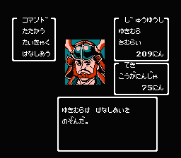 十勇士が行動するためには家来が必要だ。家来を集める方法はまず、敵と出会ったときに「はなしあう」のコマンドを選ぼう。「家来にならぬか」と話しかけて相手が応じたら何人雇うかを決め、要求される武器と兵糧を与えればよい。