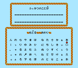 | 2 | 前回メモしたパスワード 前回メモした(ふっかつのことば)を正確に入力しよう。名前入力とおなじように入力すればOKだ。