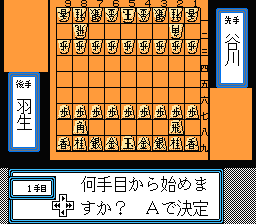 どちらのモードを選んでいても、セレクトボタンを押すと、下の画面が表示されます。スタートボタンを押すと選択画面に変わり、もう一度棋譜を選ぶことができます。