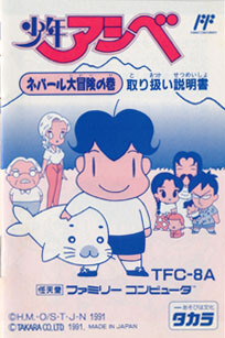 このたびは、タカラのファミリーコンピュータ用ゲームカセット「少年アシベ・ネパール大冒険の巻」をお買い上げいただきまして、誠にありがとうございます。ご使用の前に、取り扱い方、使用上の注意など、この「取り扱い説明書」をよくお読みいただき、正しい使用法でご愛用ください。なお、この「取り扱い説明書」は大切に保管してください。