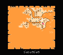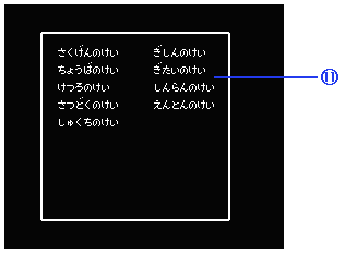 | 地図(ちず) 現在の位置を知るための道具です。四角の枠で現在位置が示され、地図上の矢印を十字ボタンで操作して、表示されている城の名前を知ることができます。