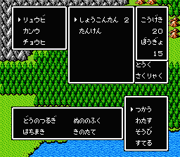 赤兎馬を装備すると、劉備軍の移動速度が2倍になって、とっても移動が楽になります。赤兎馬は劉備軍の仲間になる誰かが持っています。誰か隊列に加わったら、必ず持ち物をチェックしましょう。