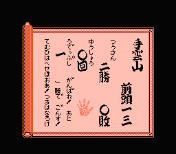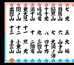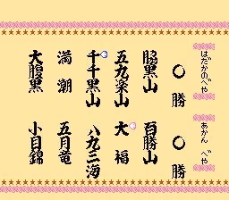 各部屋には5人ずつ力士がいる。自分の部屋の力士のなかから、一番手を決め、スタートボタンを押してはじめよう。