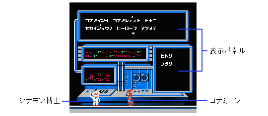 | ● | 2人で、コナミマン(Ⅰコントローラー)、コナミレディ(Ⅱコントローラー)になって、同時にプレイできるぞ! |